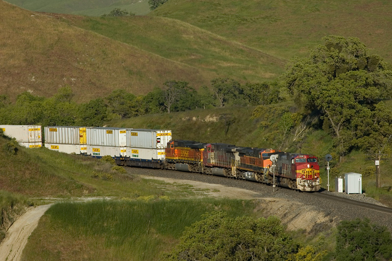 A southbound BNSF Z train splits a pair of targets as it approaches Tunnel 2.