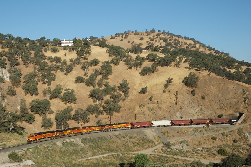 A BNSF southbound manifest exits Tunnel 17 as it approaches Cable on its way south to Mojave and beyond.