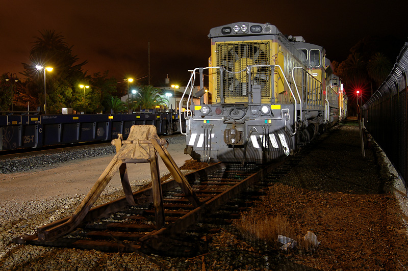 Two SD70ACes and an MP15 makes for an odd helper set. The MP15 was used to provide air for starting the SD70ACes as their own tanks would often run low from sitting unused for too long.