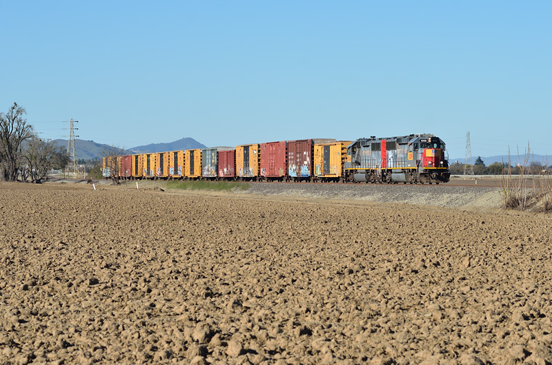 The UP Hollister Local has just left the Coast Sub and entered the Hollister Branch at Carnadero. After lining the switch back for the main, the Local wills start heading down the branch at all of 10mph.