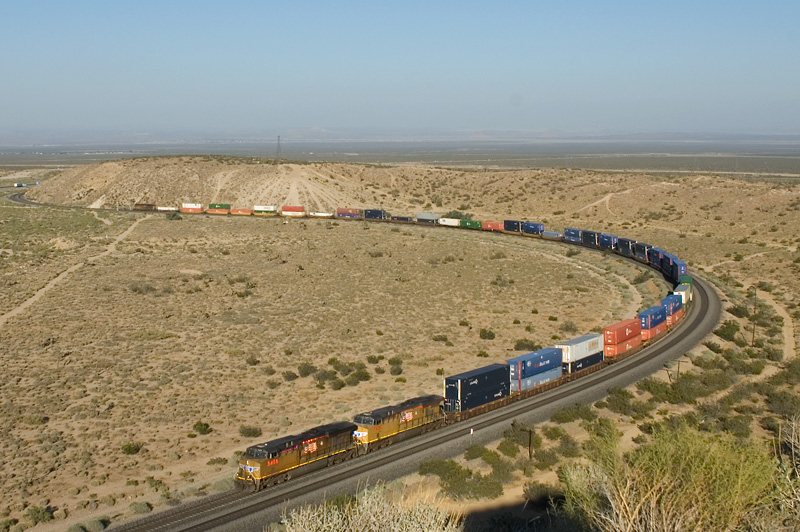 Union Pacific's northbound Golden State Z train makes its way around a curve at Warren on its way towards Tehachapi.