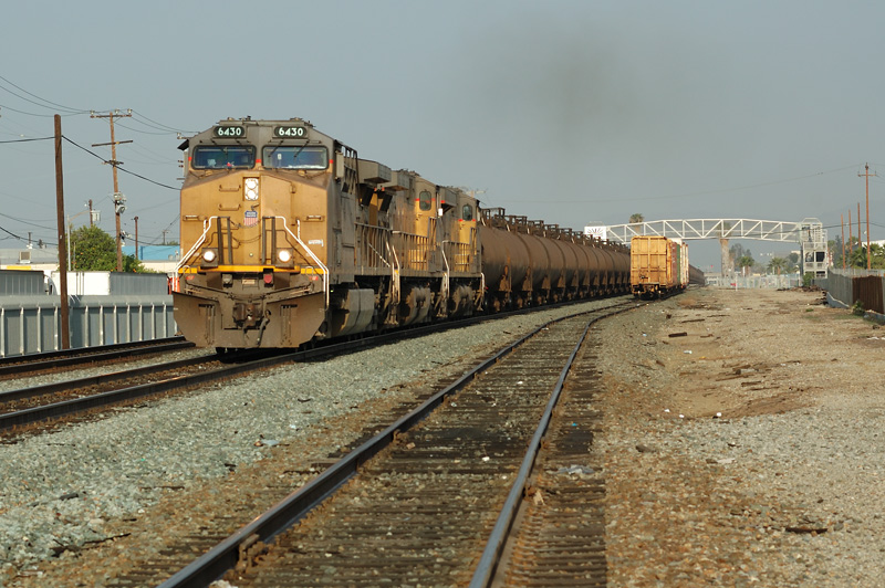 The Coast Oil Cans make their way through Van Nuys on their southbound trip to deliver seventy eight car loads of crude oil to Wilmington, CA.