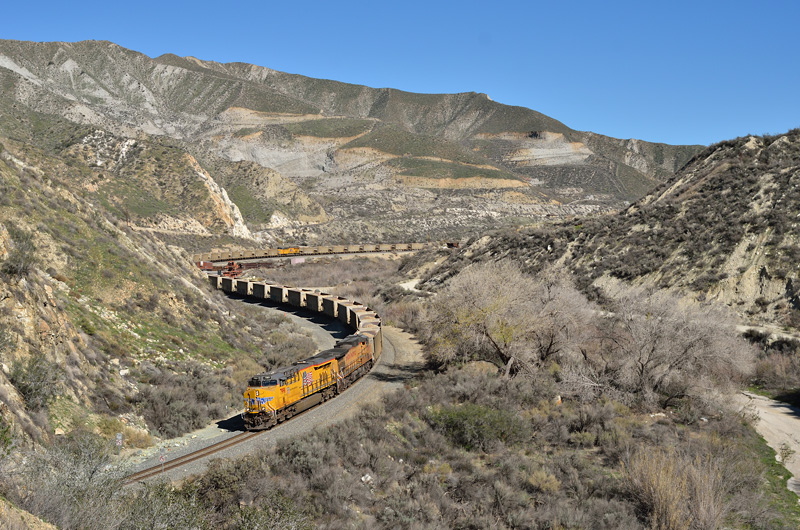 The westbound RVUVU nears the east portal of Tunnel 18 as it works its way through Soledad Canyon.