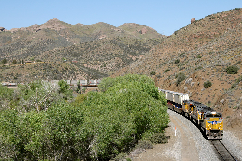 The Seattle bound Z intermodal train makes its way east through Soledad Canyon.