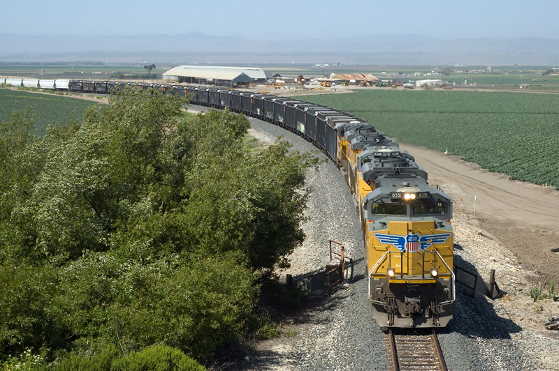 A long Guadalupe Turn has departed Guadalupe and is working its way up grade towards Waldorf on the UP Santa Barbara Sub.