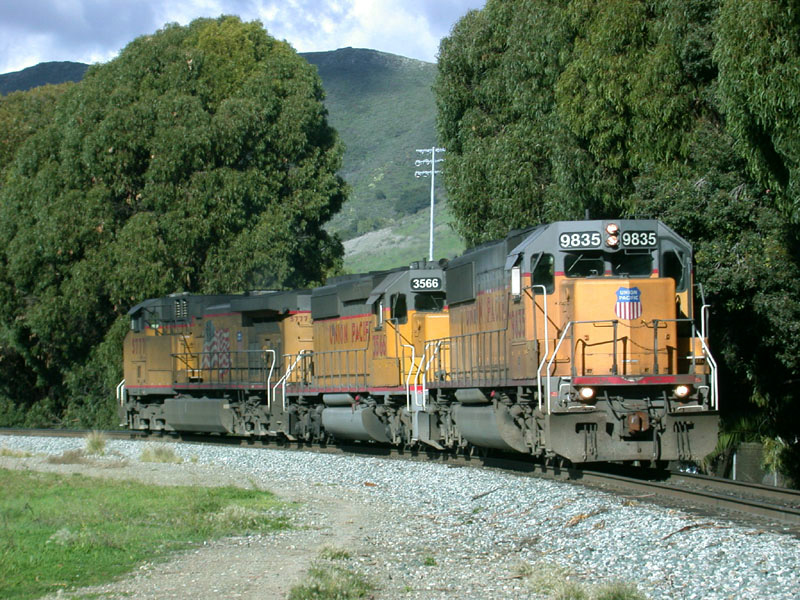 The San Luis Obispo helpers led by an SD50 return to SLO after helping a northbound freight over Cuesta Grade.